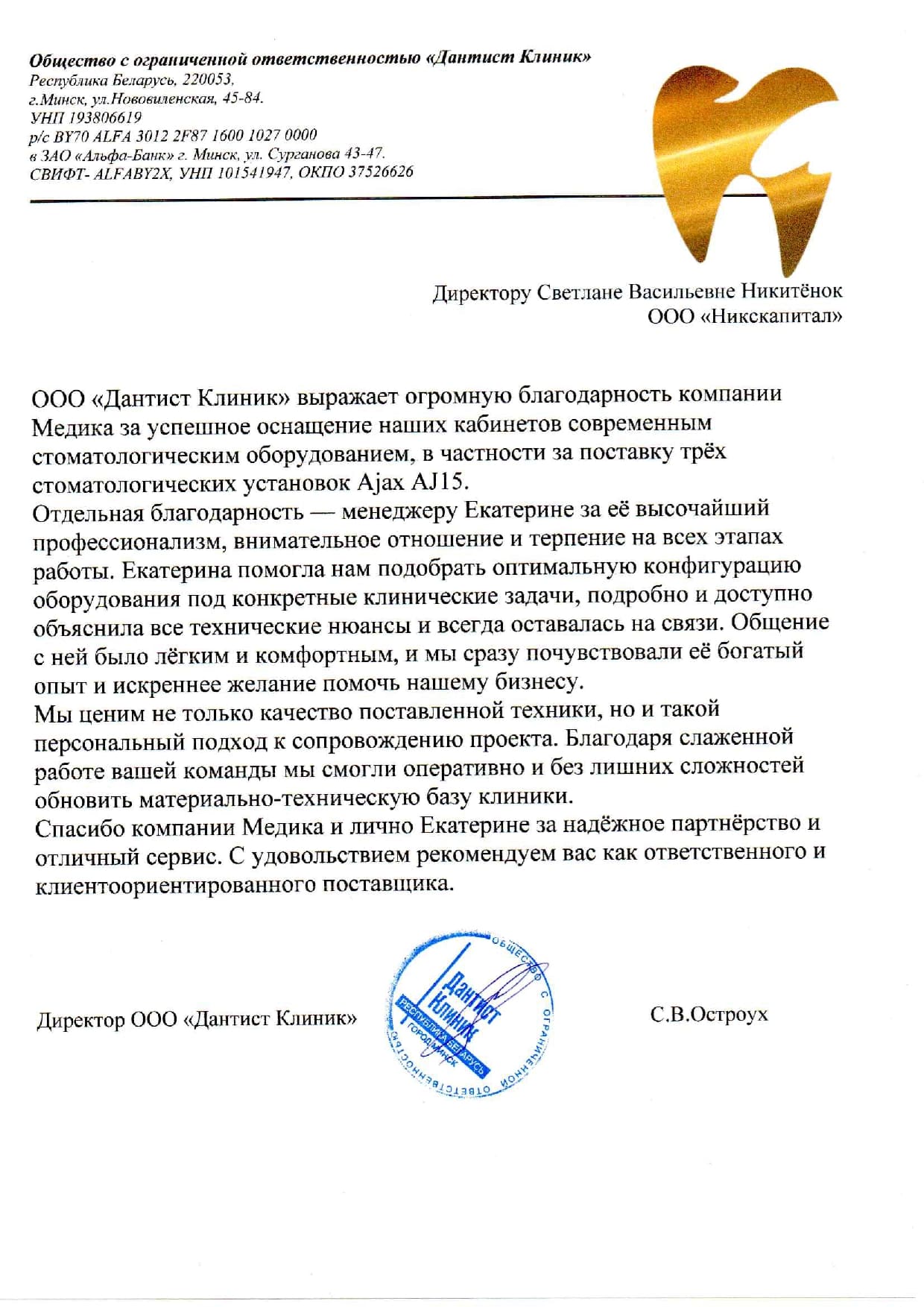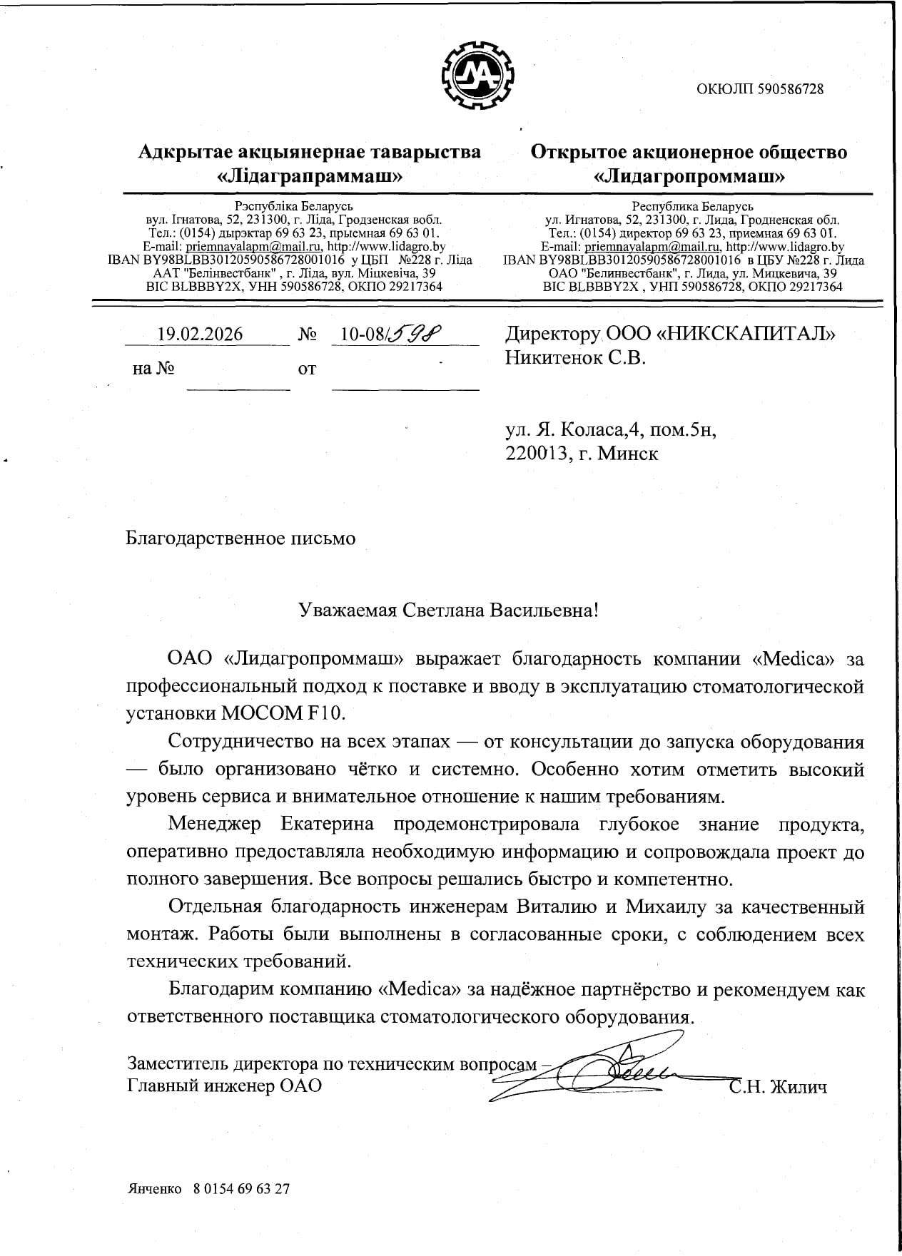 Расчётный счет: BY02PJCB30120763001000000933 в ОАО “Приорбанк” г. Минск, Логойский тракт, 15/1, БИК PJCBBY2X
